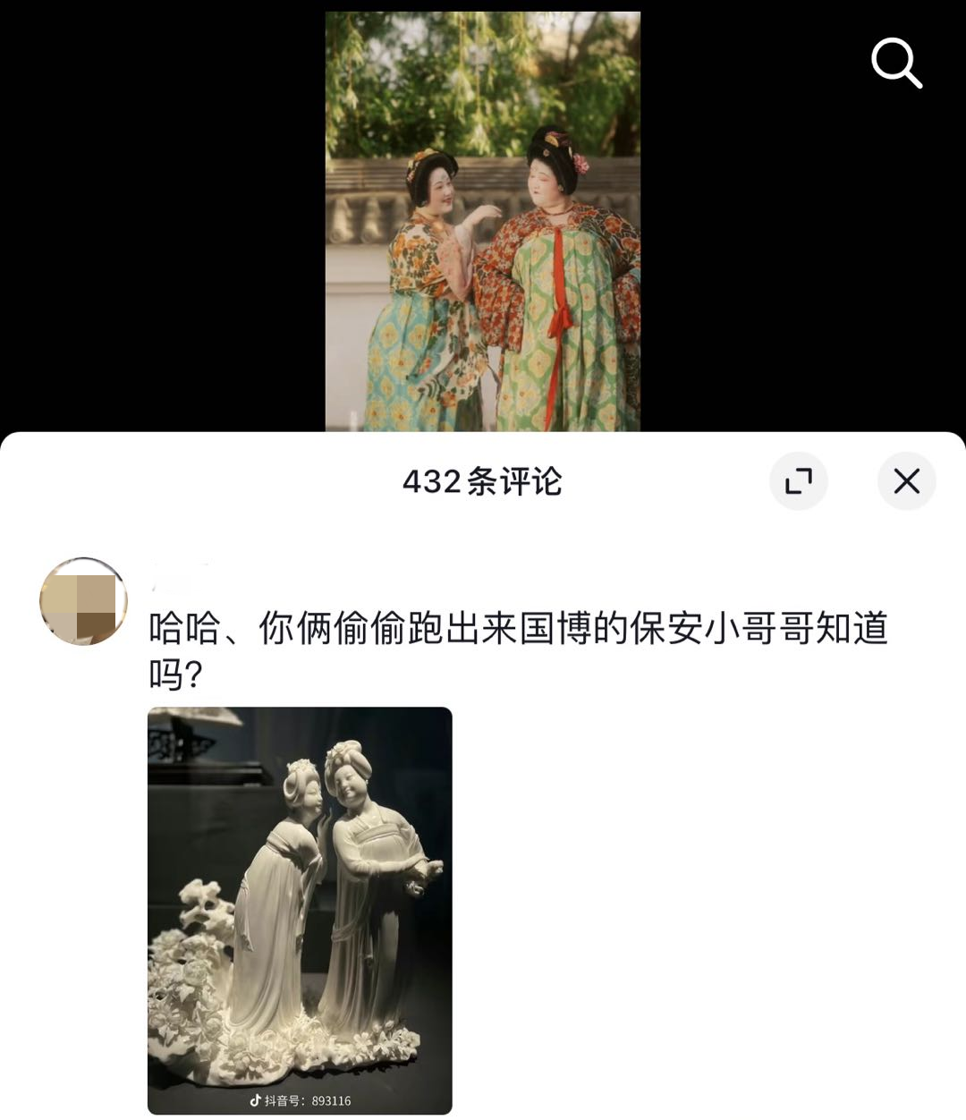 年轻人爱在社交媒体给博物馆文物开脑洞。来源抖音用户@长歌要努力吖和@尔玉吖