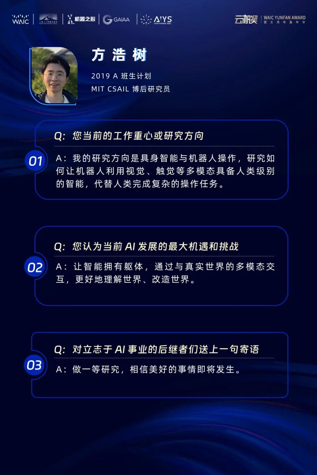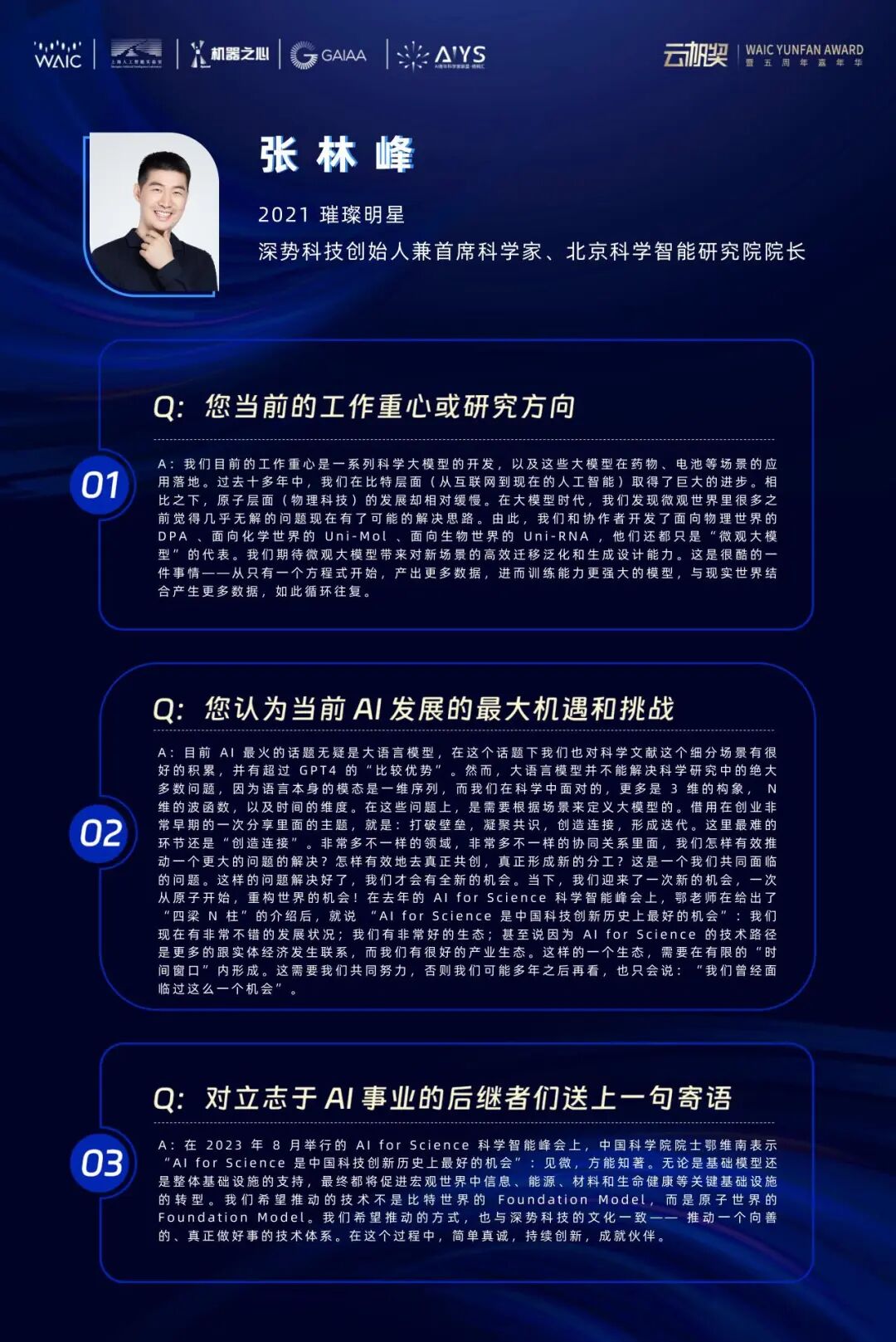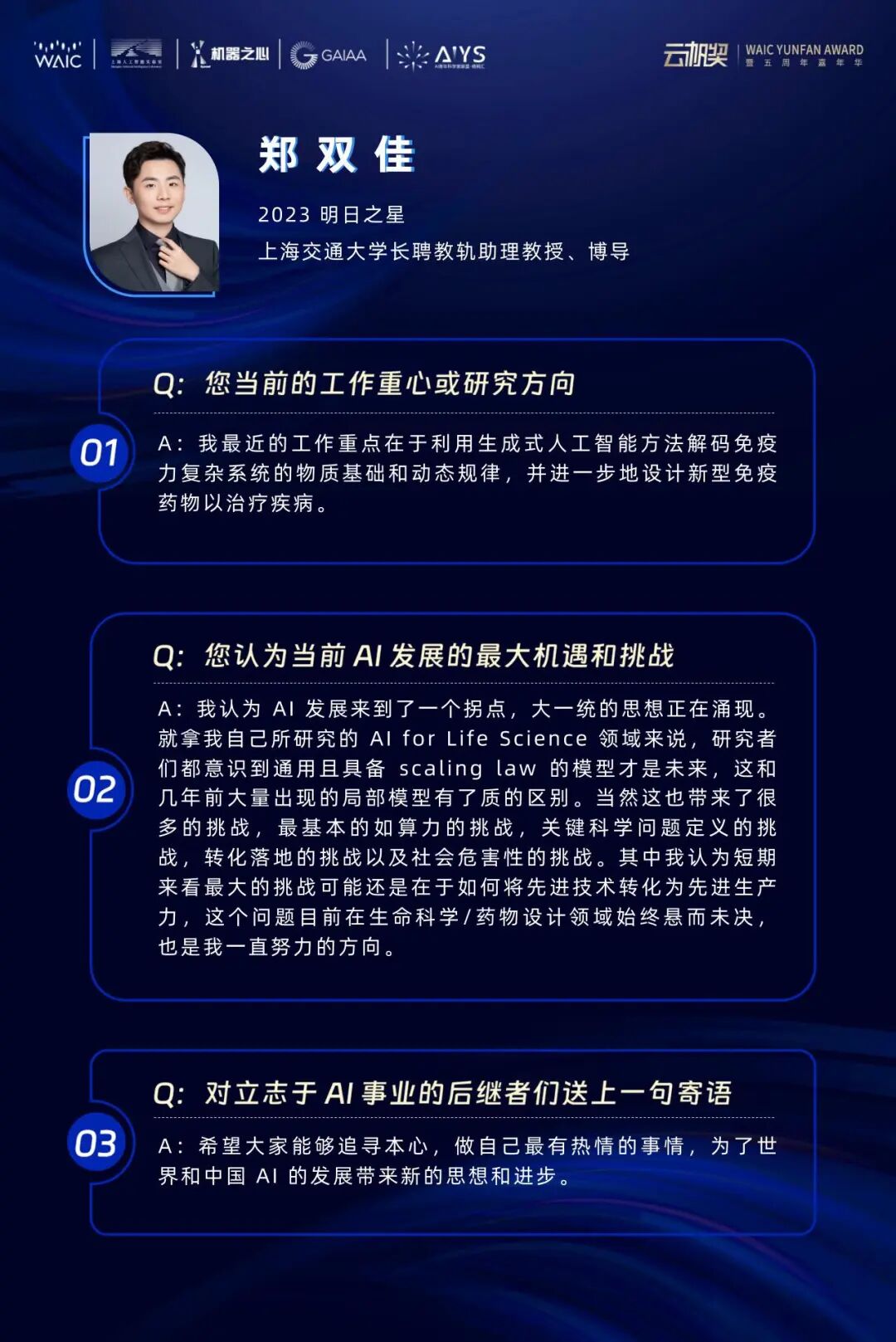五年来,从 GPT-2 掀起的自监督学习浪潮,到 ChatGPT 引爆的通用人工智能曙光,从 AlphaFold 2 对结构生物学的颠覆式革新,到 AI for Science 的蓬勃发展,从 DALL-E、Stable Diffusion 带来的视觉艺术革命,到如今生成式 AI 席卷各行各业的浪潮,WAIC · 云帆奖见证了 AI 的一个个突破,更见证了一批批 AI 青年才俊的成长。