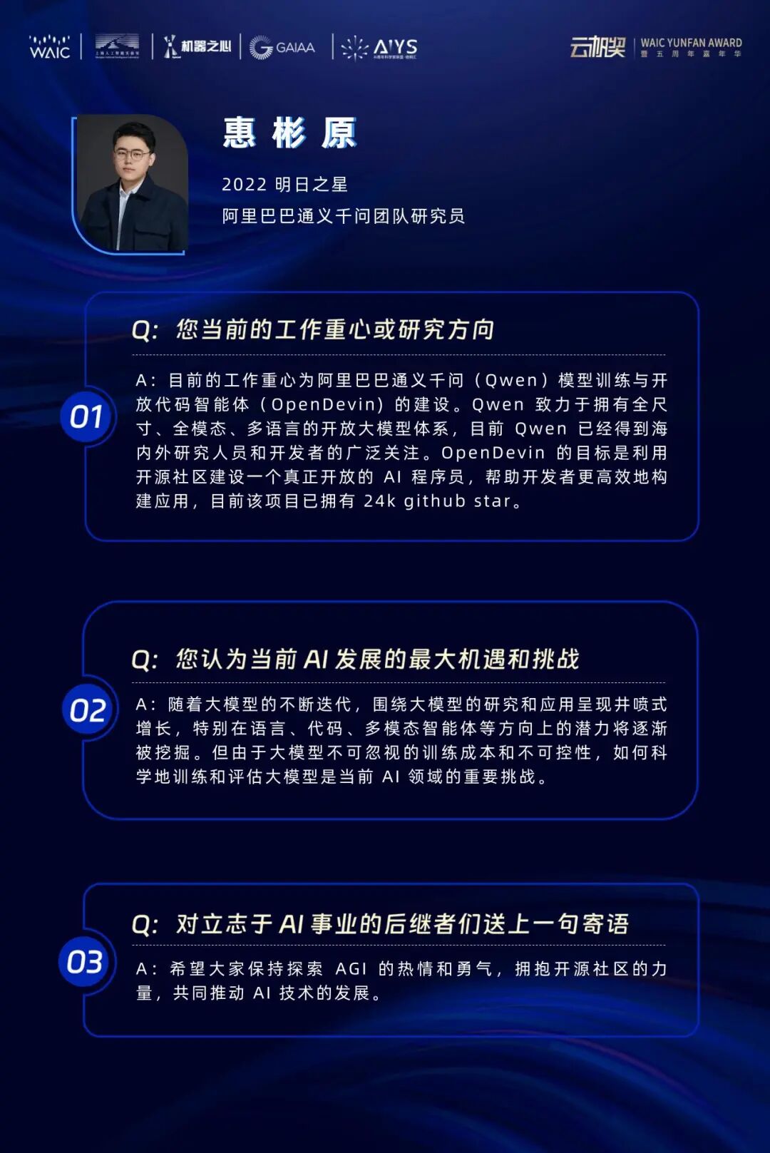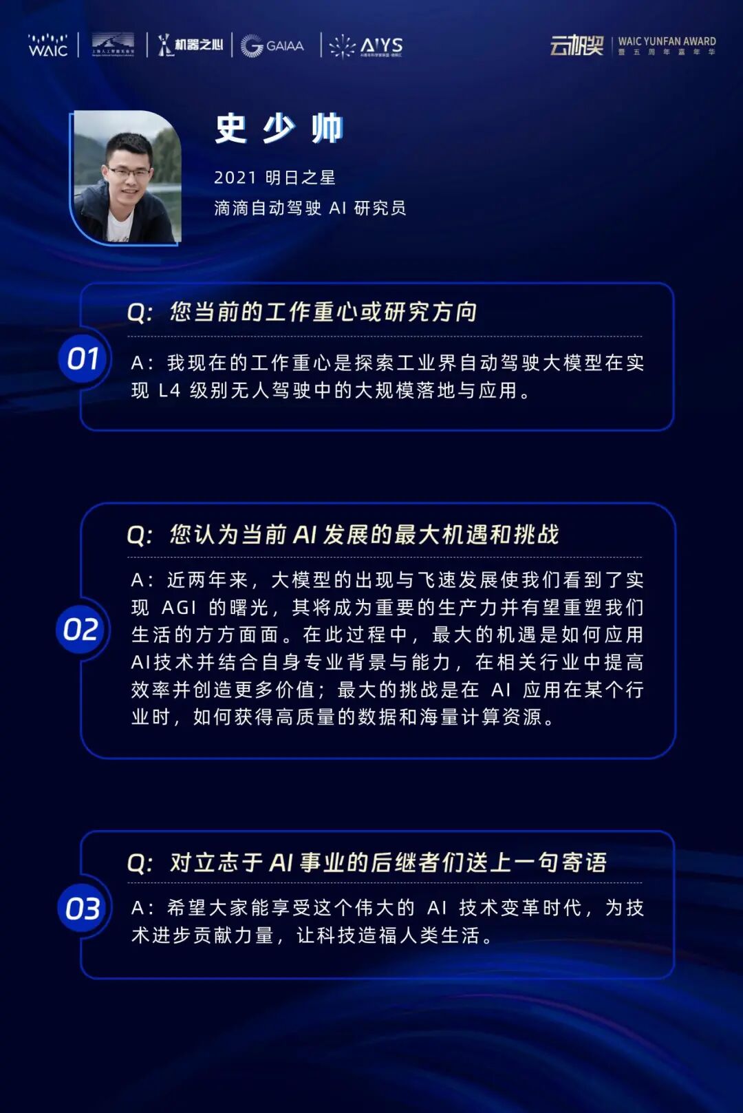 让我们一同走近这些 AI 领域的佼佼者,倾听他们对 AI 发展的思考和憧憬,感受他们对未来的期许和担当。或许,下一个颠覆世界的 AI 突破,就源自他们不懈的探索。