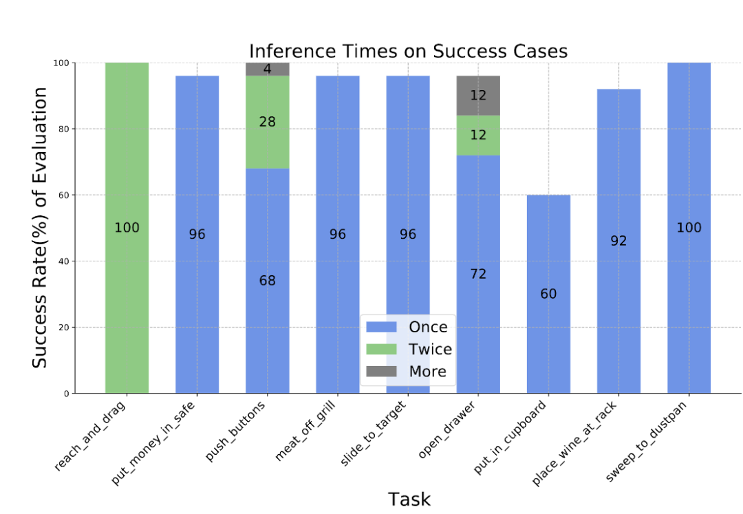 - 采用时序动作建模技术,捕捉动作序列中的时序信息,更好地理解任务的动态变化,并及时调整机器人的策略和执行方式,使机器人保持较高的执行效率。
