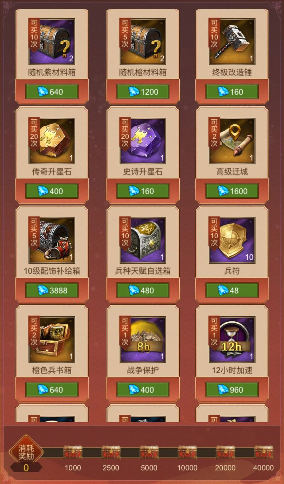 大家可以通过消耗钻石去购买自己心仪的游戏道具,本次活动可是为大家准备了随机橙材料箱、随机紫材料箱等商品哦~