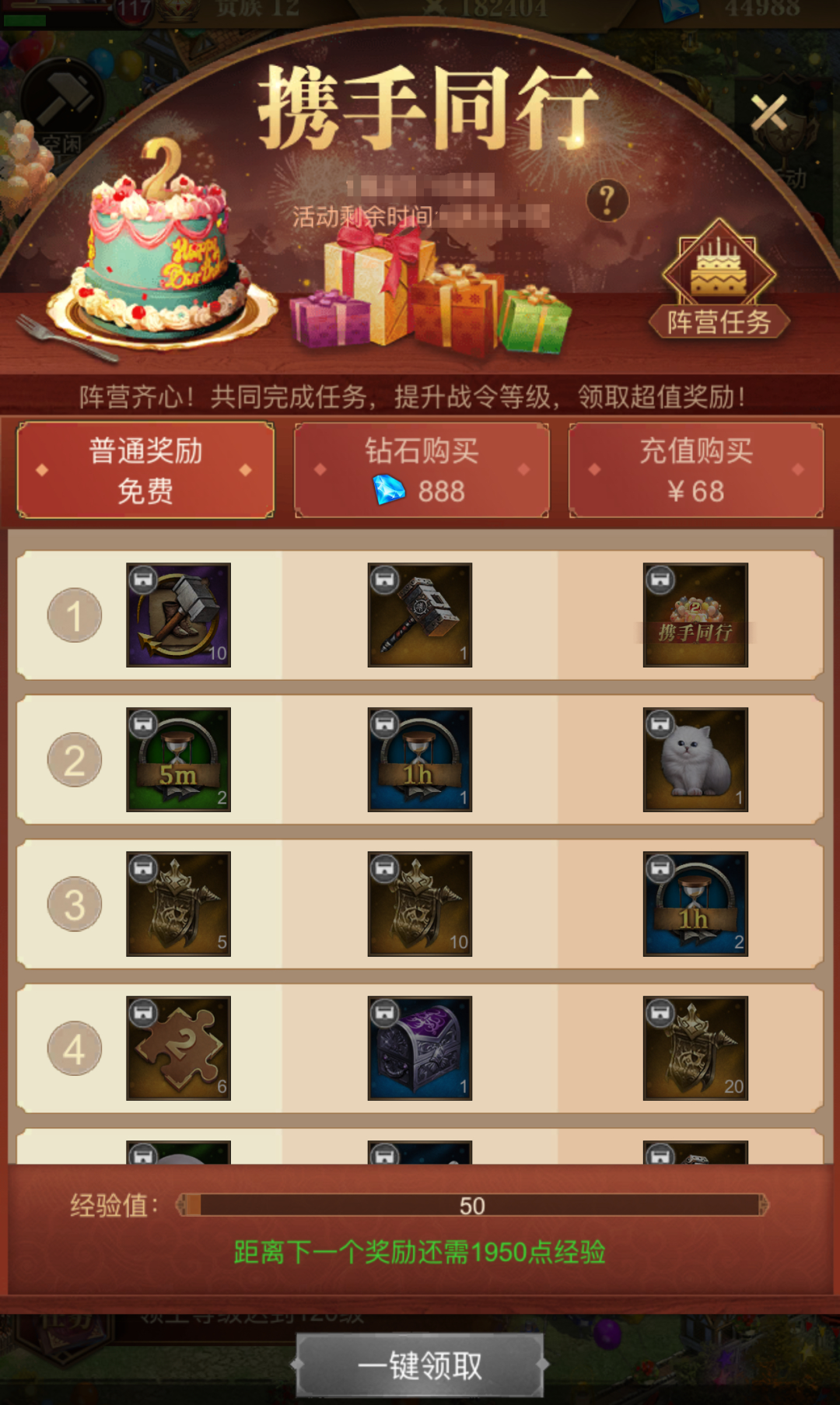 活动期间,领主可免费解锁普通奖励,或者通过钻石和充值解锁高级和豪华奖励。