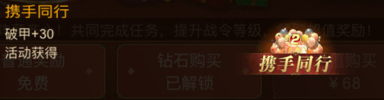 小帝小tips:花费68元解锁豪华奖励,满足等级经验条件后,还可获得两周年限定称号“携手同行”!称号属性是破甲+30哦~