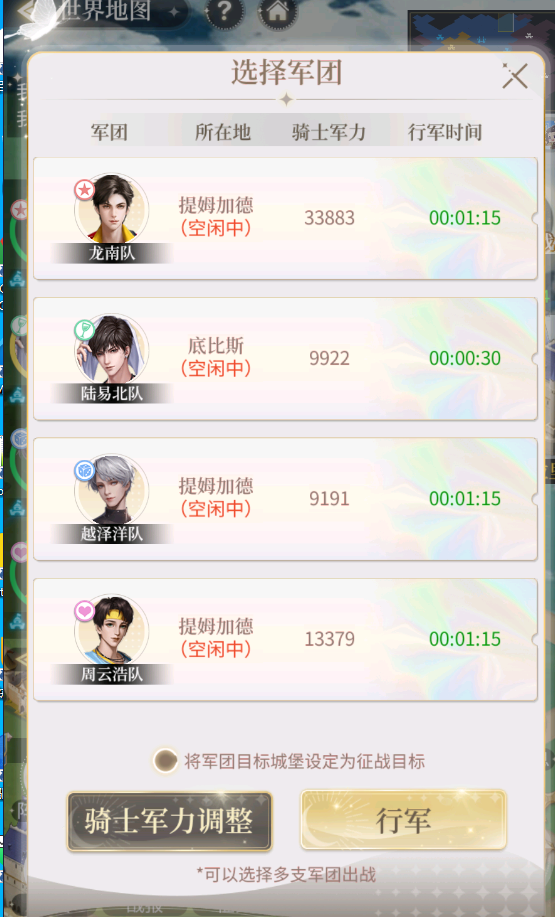 Tips:骑士军力低于3000则无法行军!行军中也无法取消了哦!