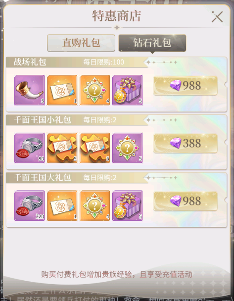 1、兑换钻石礼包,获得战场加成