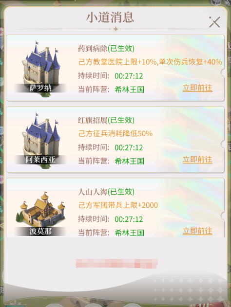 *小道消息有展示期和生效期,只有在生效期内才能获得增益buff哦~