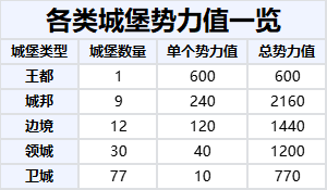 2、城堡:每个阵营王国都拥有一定数量的城堡,城堡自带势力值,还能产出王国金币,城堡等级越高,势力值越高,产出的王国金币越多。