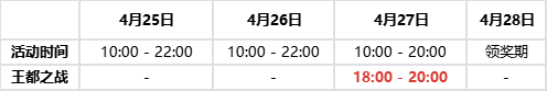 1、开启时间:4月27日 18:00 - 20:00