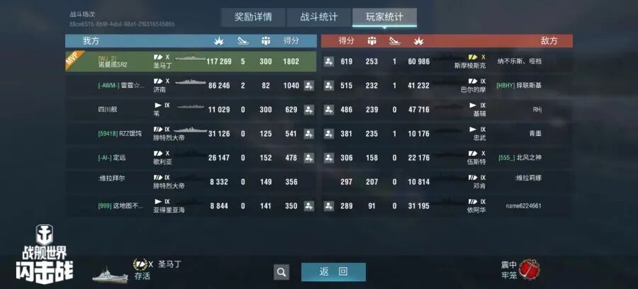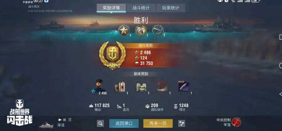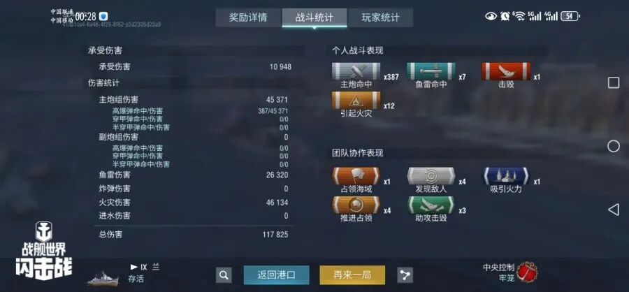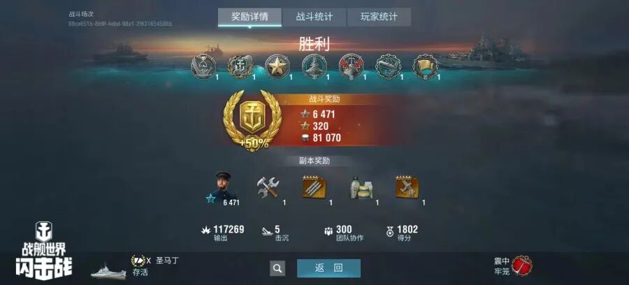 舰长@瓦剌留学生驾驶R系IX级驱逐舰兰主炮命中387发!鱼雷命中7次!击毁敌方战舰1艘,造成敌舰起火12次!总伤害11w+!恭喜舰长获得了水火无情史诗勋章~