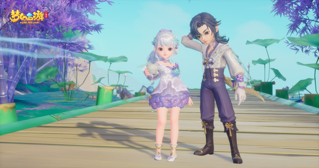 绿草如茵,百花争艳,全新夏季珍耀锦衣【玉绣千花】惊艳上线!女款【玉绣千花】以淡紫色为主色调,一席连体短裙绘出曼妙身姿,裙摆处繁花锦簇,如梦似幻。男款【玉绣千花】选用深紫为主色调,笔挺版型彰显儒雅之气,收腰设计展现完美比例!