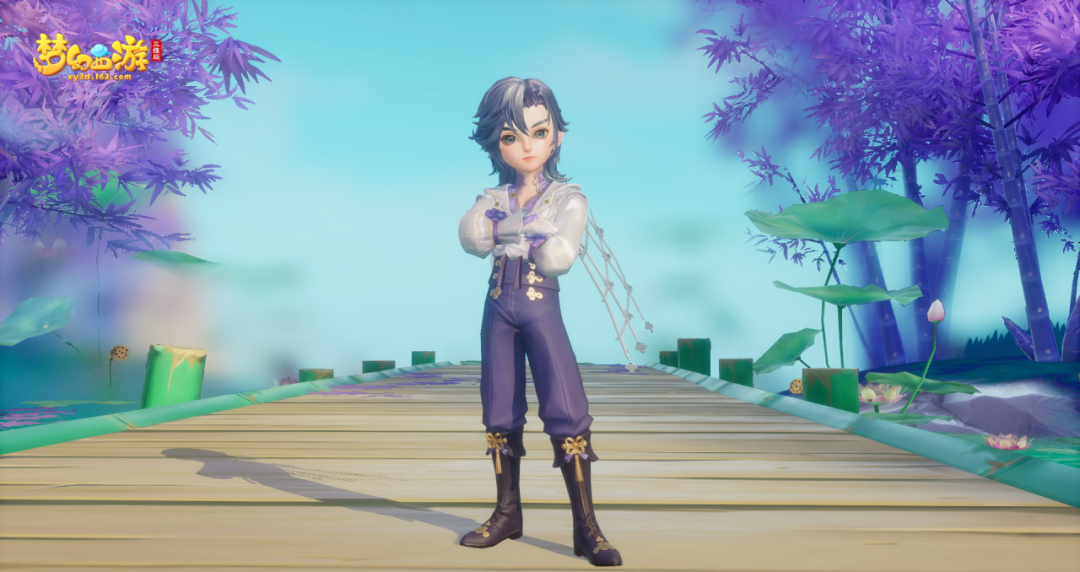 向下望去,男款【玉绣千花】紫色长裤材质柔软细腻,搭配便于行动的黑色长靴,轻盈有力。优雅永不过时!