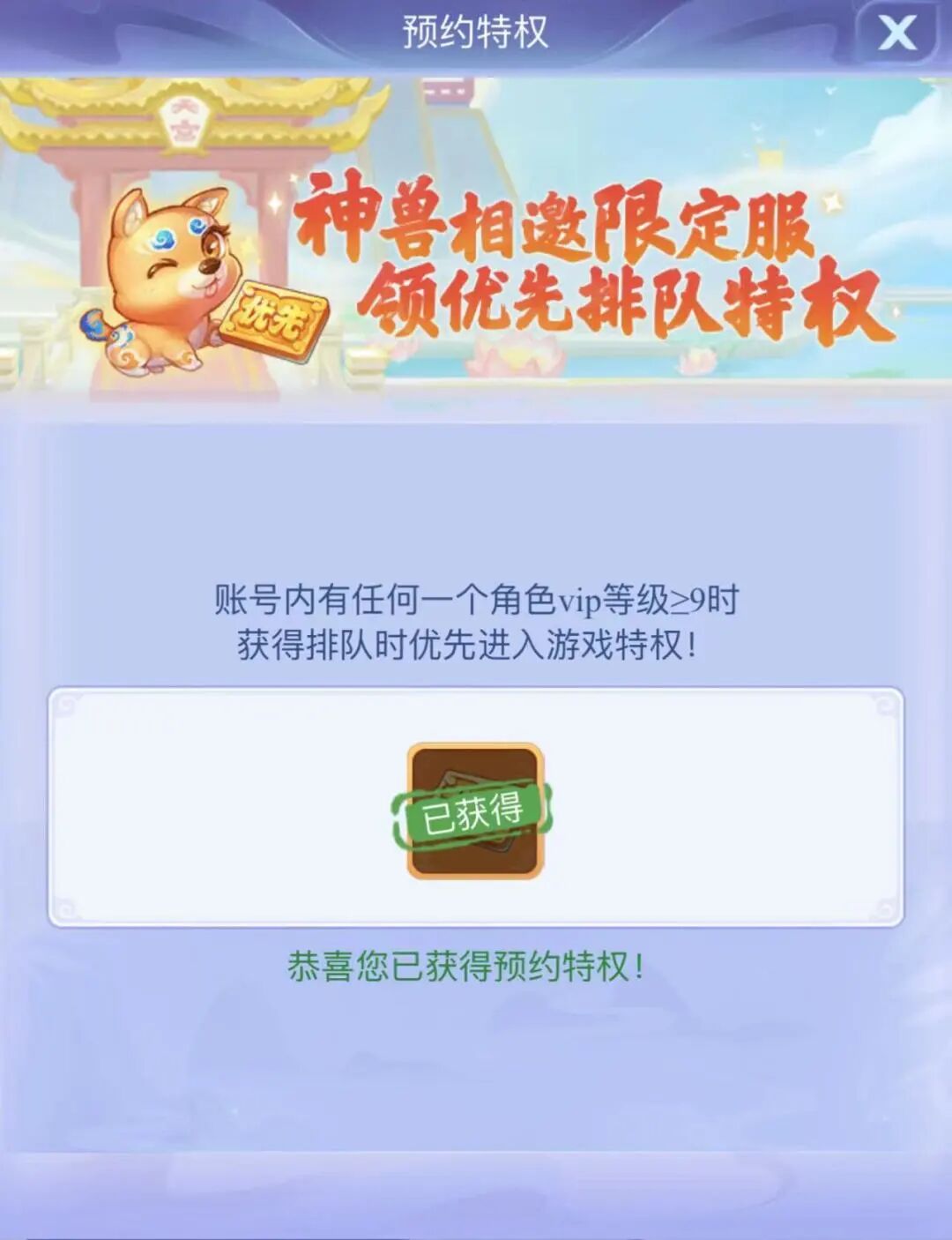 预购首充成功后
