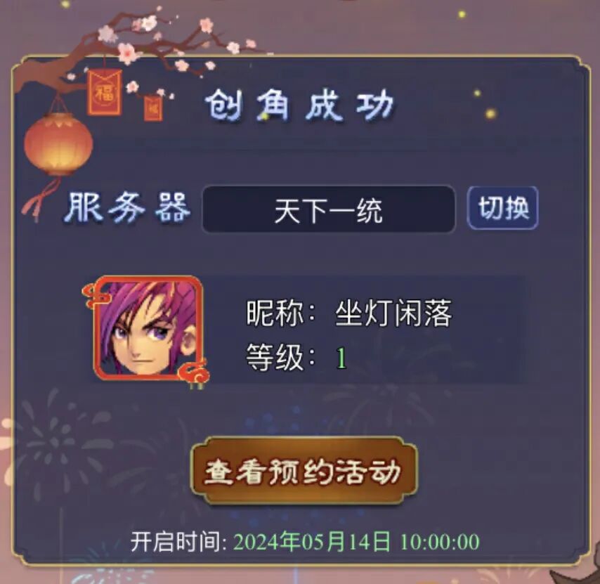开服时间:2024年5月14日10点