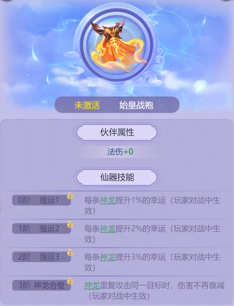 升至2星:每条神龙提升秦始皇1.5%的法伤