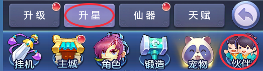 1、系统查看入口:点击伙伴-升星-升仙即可查看。