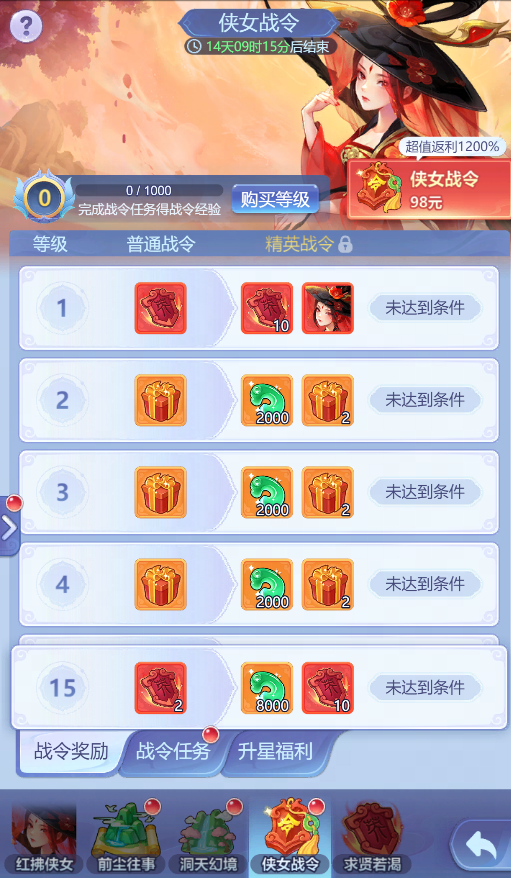 2、点击“侠女战令”,进行获取。