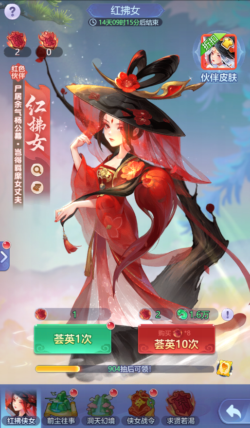 1、点击进入“红拂侠女”,使用“荟英令”进行抽取。