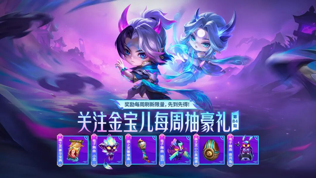 活动奖励有小小英雄【电子舞曲 小志】、【电子舞曲 焰羽】、【电子舞曲 夜月兔】,【画之灵 豪华宝典】、【画之灵 徽章盒】、【画之灵 小小英雄蛋】!