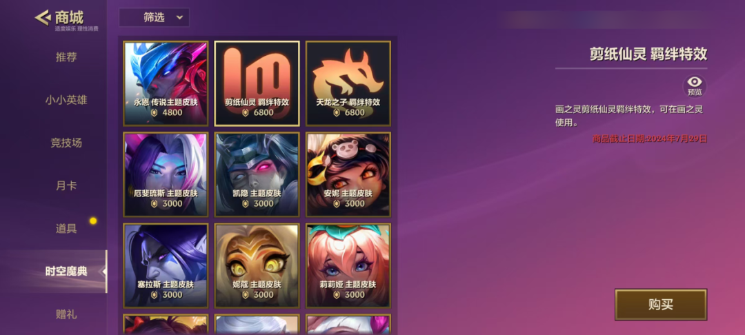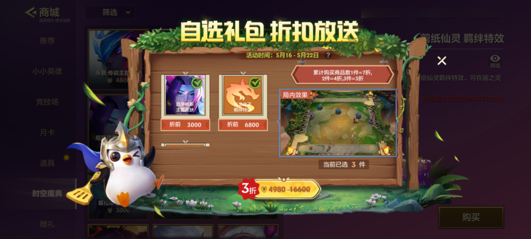 除了商城直购的获取方式外,【折扣自选礼包】也同步上线商城,同时购买【天龙之子 羁绊特效】、【剪纸仙灵 羁绊特效】、【厄斐琉斯 主题皮肤】最低可享3折优惠!
