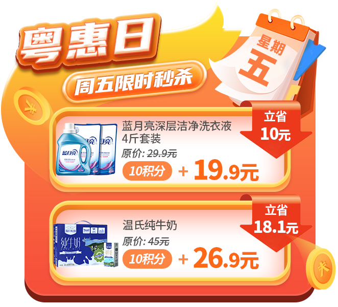 4.活动商品将不定期更新,具体商品以实际上线为准,活动商品数量有限,先到先得。粤惠日活动商品每位客户每次限购 1件。