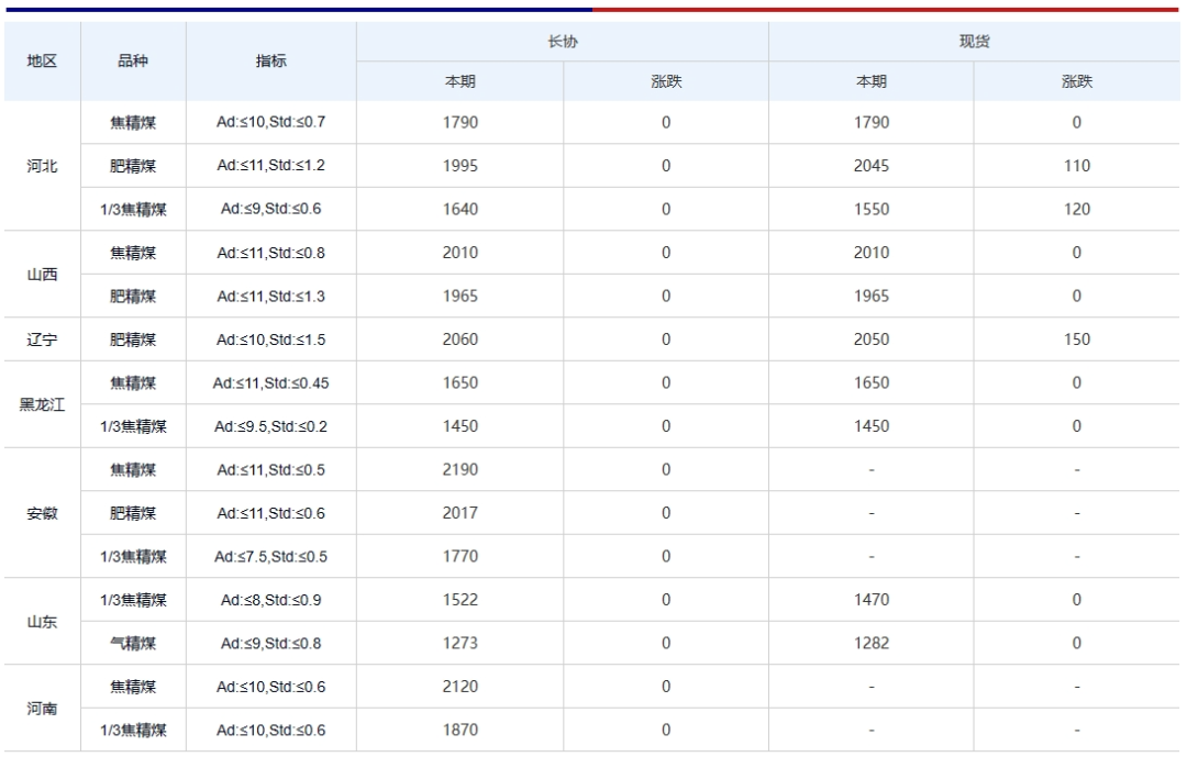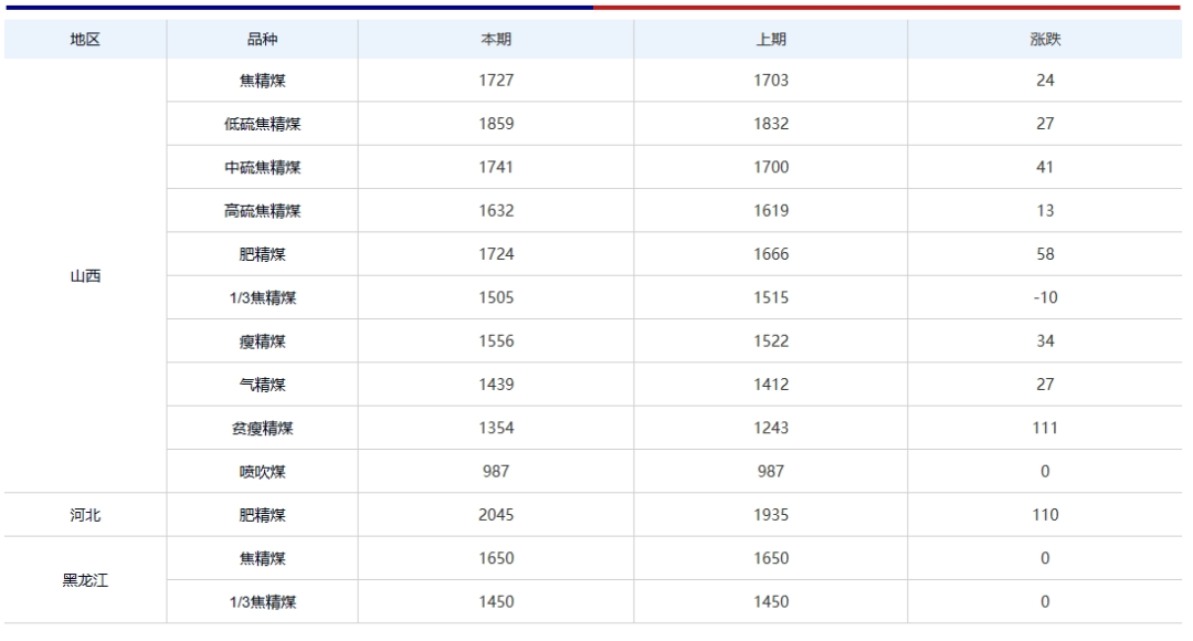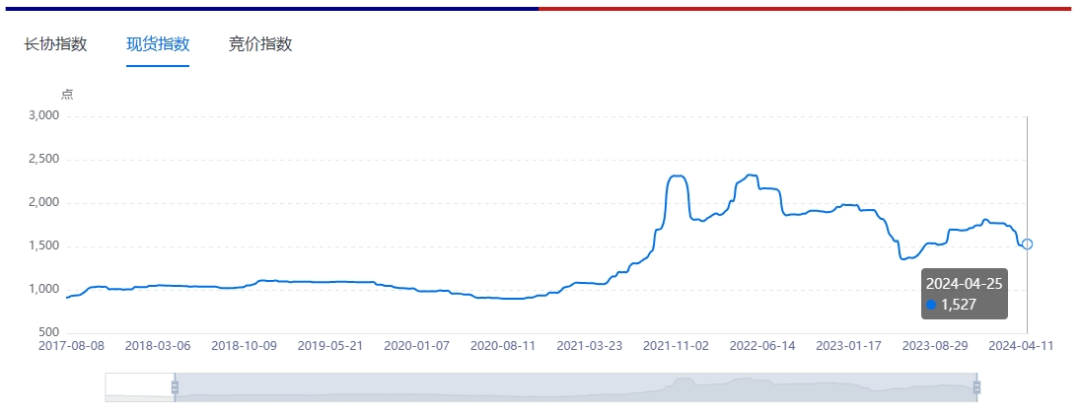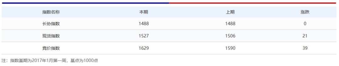 具体来看,现货指数报1527点,较上期上涨21点,涨幅1.39%;竞价指数报1629点,较上期上涨39点,涨幅2.45%;长协指数报1488点,较上期持平。
