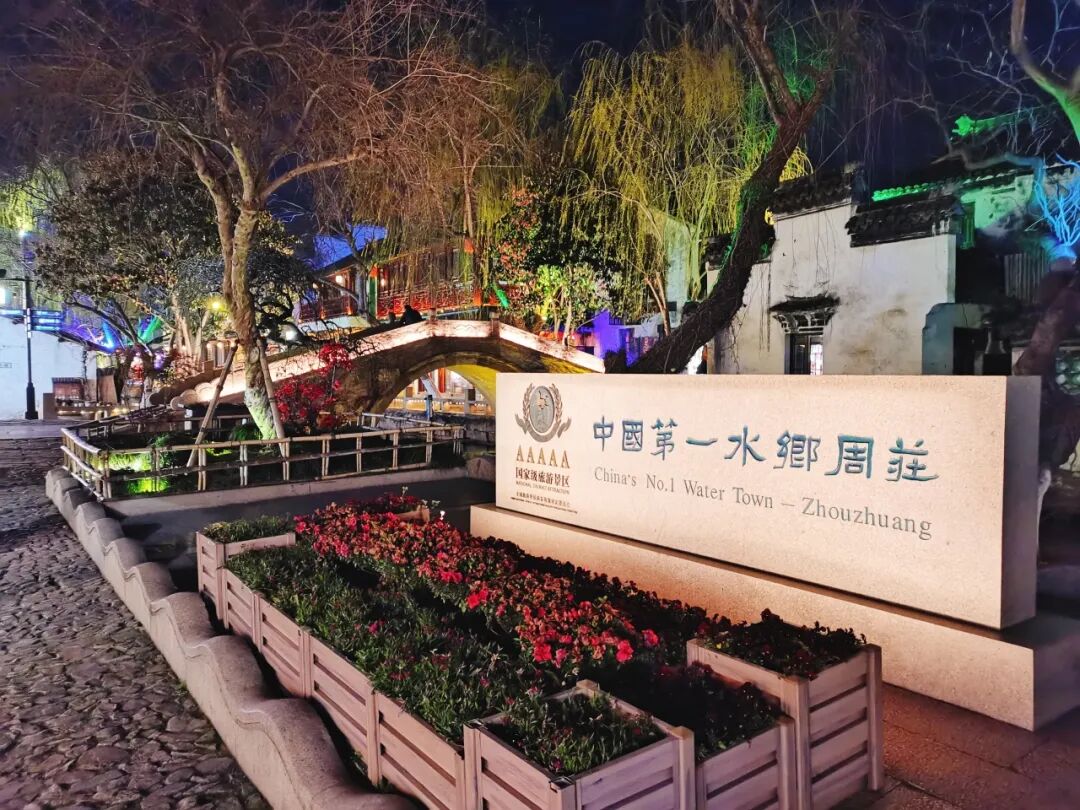 第三站游览周庄古镇,错落有致的老屋、雕镂精美的窗栅、瘦瘦的木船、小小的石条埠……保存着历史千年的文化脉络,青砖白瓦间描一笔江南古镇,摇橹船上, 欸乃橹声枕河而居如画周庄。