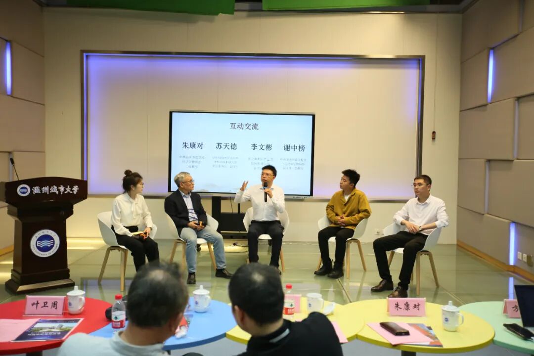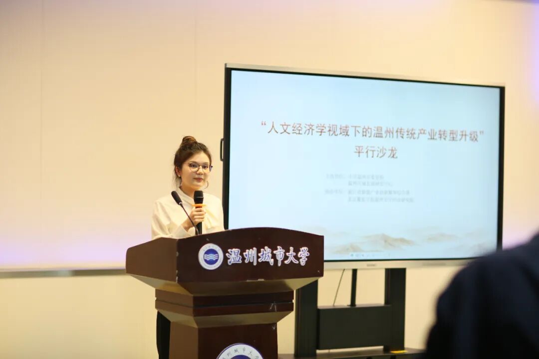 中共温州市委党校经济学教研部二级教授朱康对、华中科技大学温州先进制造技术研究院副院长、党总支书记苏天德、浙江惠利玛产业互联网有限公司副总经理李文彬、中共温州市委党校文化与社会学教研部副主任、副教授谢中榜等4位专家学者分别围绕《从生产基地到时尚之都——温州打造世界鞋都的思考》、《走进温州眼镜产业》、《探索AI鞋履设计之旅》、《艺术点亮乡村——以永嘉箬溪为例》先后作了主题发言,共同探讨人文经济学视角下温州传统产业转型升级的新思路、新机遇和新挑战。
