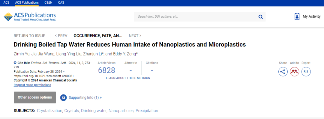 来自广州医科大学和暨南大学联合开展的研究揭示了“喝温开水”的重大健康意义——煮沸硬水能有效去除至少80%的纳米塑料/微塑料(NMPs),堪称最为简单且无害的“净化”自来水方式, 从而减少人类通过饮水所致的NMPs摄入量。