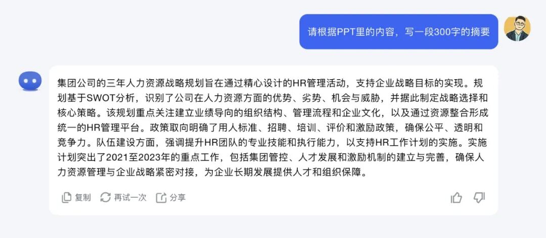 - 遇到一份好的文档,请它帮忙将其中的文字提取出来,并输出一份摘要,方便日后检索。