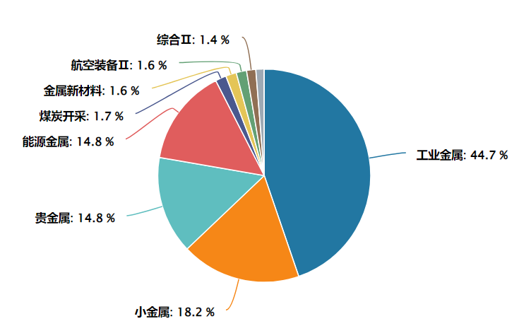 以中证800有色金属指数(000823.SH)为例,该指数覆盖有色金属板块的各个细分领域标的。行业权重除黄金之外,还包括工业金属、能源金属、小金属等几个重要类别。