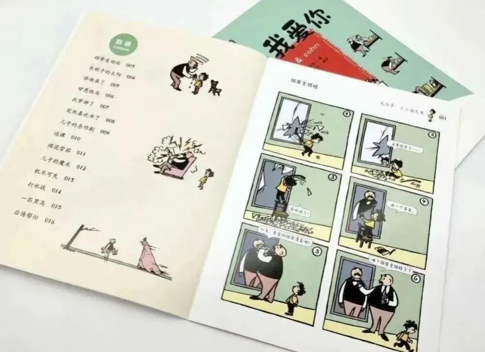 活泼生动的父子形象,浅显易懂的分块场景,以及夸张飘逸的笔触,每一个人,都能从中获得最开怀的笑声,感受到最诚挚的真情。