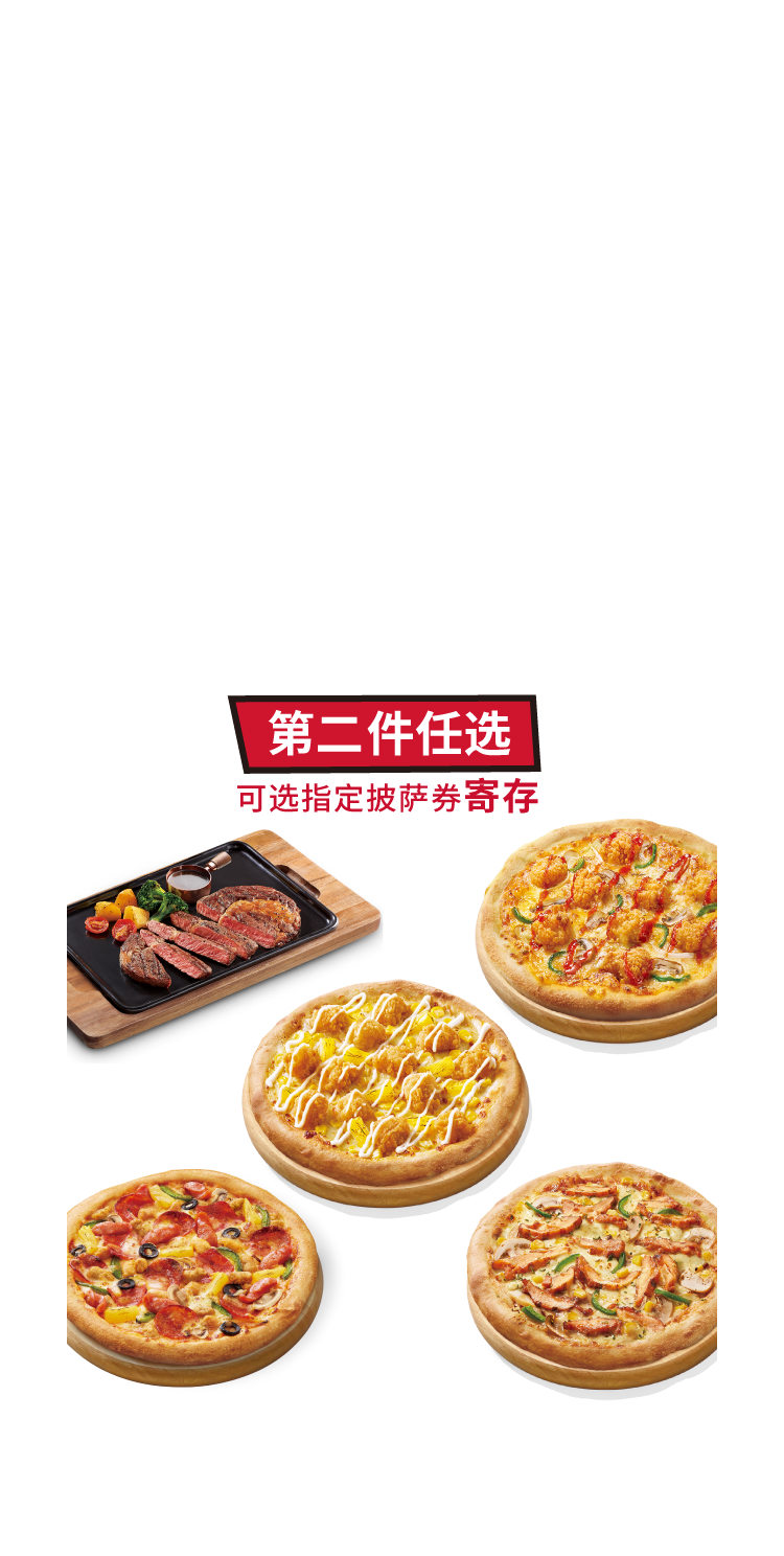 8)本活动仅限部分必胜客餐厅,交通枢纽、旅游景区及精选餐厅等部分餐厅不参加此活动,具体请以餐厅公示为准。。仅限必胜客宅急送送餐范围和服务时间,部分送餐区域不供应本产品,不同送餐区域的服务时间有差异,详情以输入地址后显示的菜单及送餐时间为准。详情请见必胜客宅急送微信小程序。
