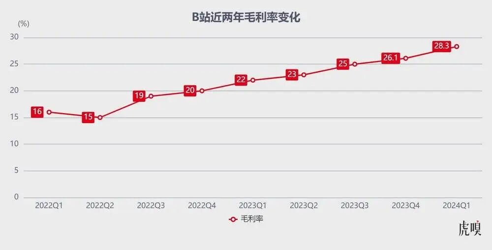 而且,2024Q1 季度 B 站毛利润同比提升 45%,毛利率连续 7 个季度环比提升,算是稳住了核心业务基础盈利能力,好歹让陈睿缓了一口气。