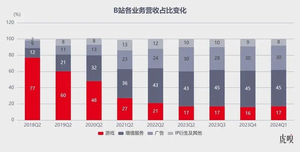 增值服务、广告业务稳中有增,游戏、IP 衍生及其他继续疲软。