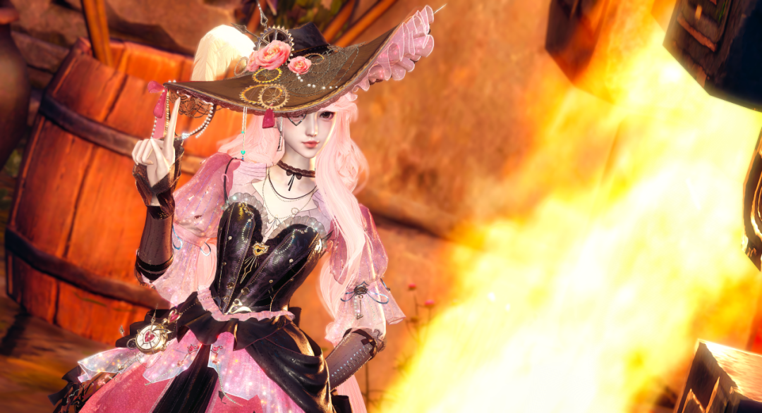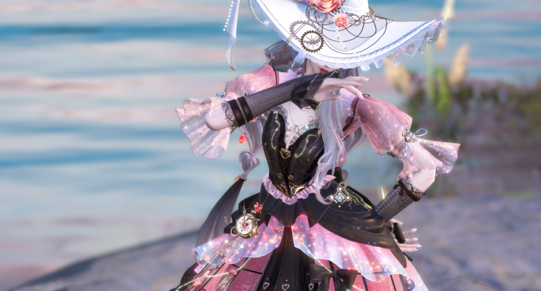身后河流静静流淌,身着原色[绮瑰眷梦]的少侠如一位跨越时光的优雅贵妇人,悄然降临于这神秘之地,向我们讲述着千年的故事。