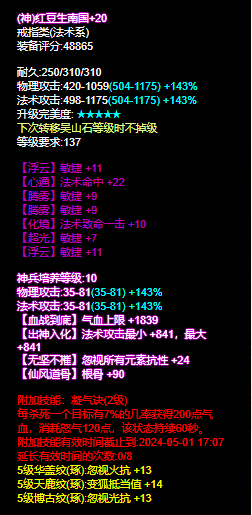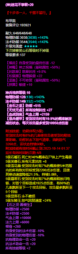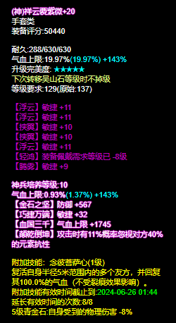 防具双50带上晕抗百比,还有物躲和敏捷词条助力,在保障高输出的同时,兼顾生存力,可谓是无懈可击,真正的战场六边形战士。