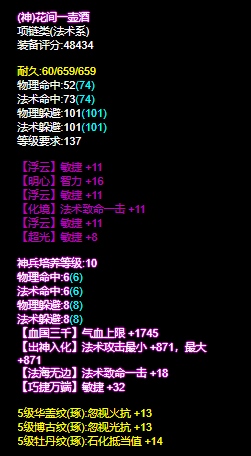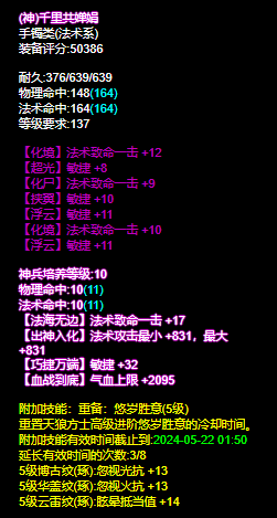 这位150级的天狼大大走的是高敏兼顾致命的路线,同时物躲和法躲也很高,属于是攻守兼备的类型。武器方面一手三最大加不修的超核配上高敏高法术致命的饰品,出招迅猛,伤害更是爆炸。