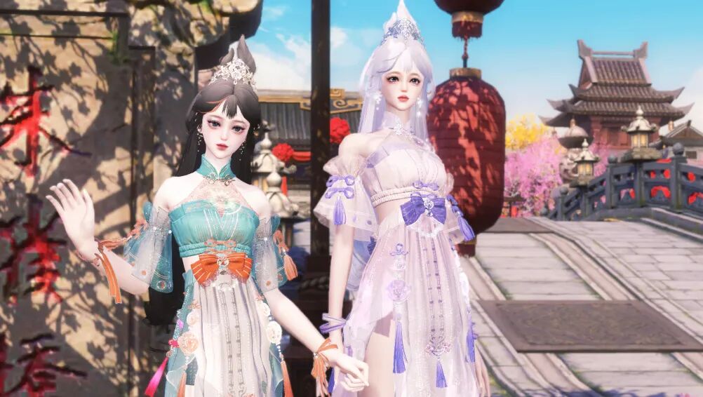 柳如眉,云似发,鲛绡雾縠笼香雪。周年庆就要和小姐妹穿上新时装,打扮滴美美哒,一起去逛街打卡~朱雀桥侧行人匆匆,二位少侠秀美的身姿却让倩倩印象深刻,过目难忘!