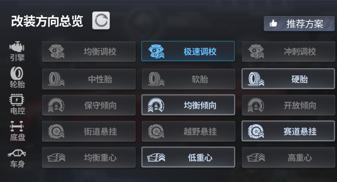 作为一台综合型性能车,小极采用了“23232”这套调校方案,手感更加稳定,推荐大家在巴塞罗那 加泰罗尼亚之舞、芝加哥 摩登环道等赛道感受这台一代经典带来的永不过时的操纵乐趣!