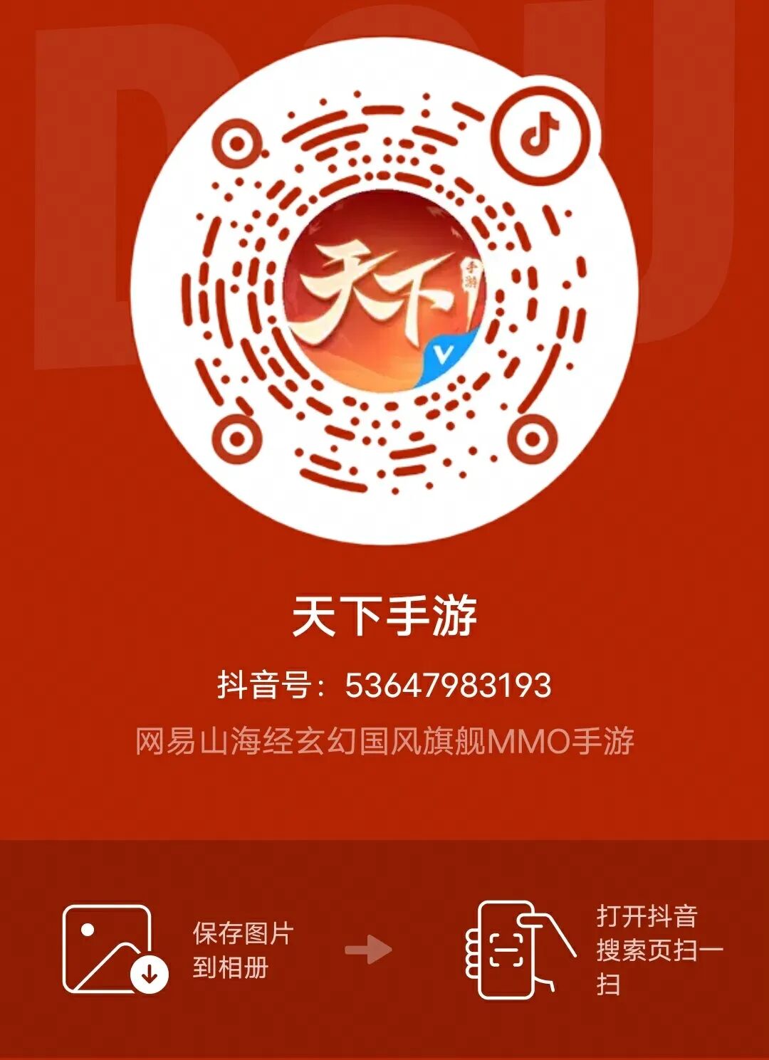 快保存扫描下方二维码,关注【天下手游】官方抖音,加入粉丝群及时获取开播时间!