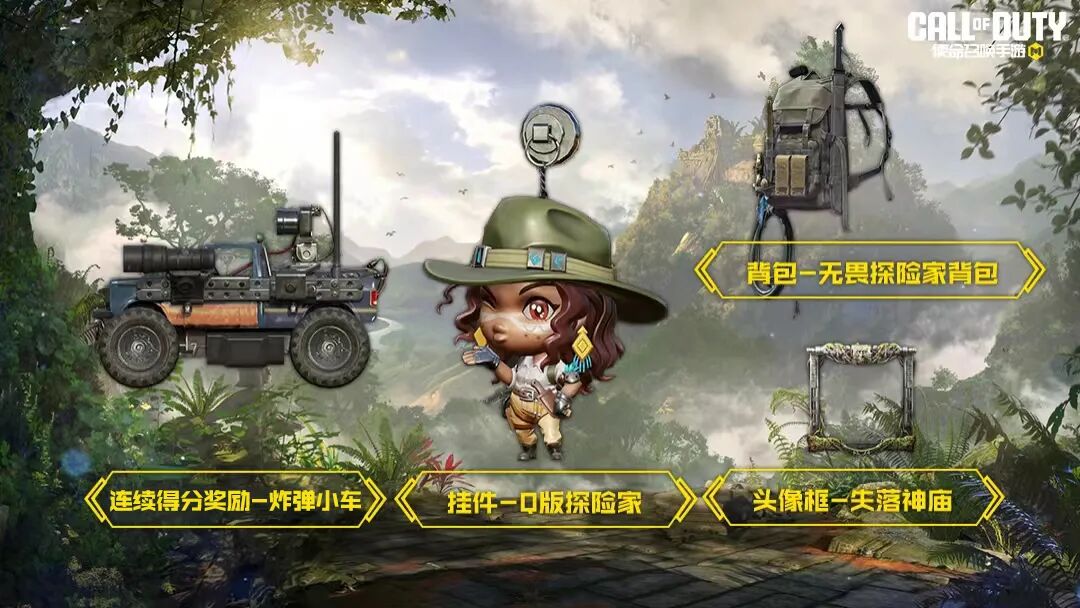 除了以上角色和武器外,本次S4使命手册还有连续得分奖励-炸弹小车、挂件-Q版探险家、背包-无畏探险家背包、头像框-失落神庙等精美奖励等待战士们获取。