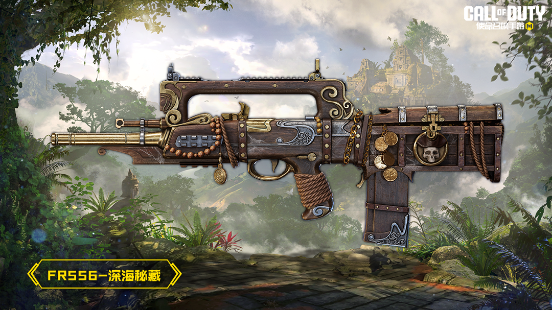 FR556-深海秘藏身上藏有一段深海沉船故事,武器的整体造型仿佛是从海底打捞上来的珍贵宝藏,每一个细节都充满了故事感。枪身上的金色饰品由某种特殊材料制成,它们在水下经历了长时间的侵蚀,但仍然闪耀着迷人的光芒。