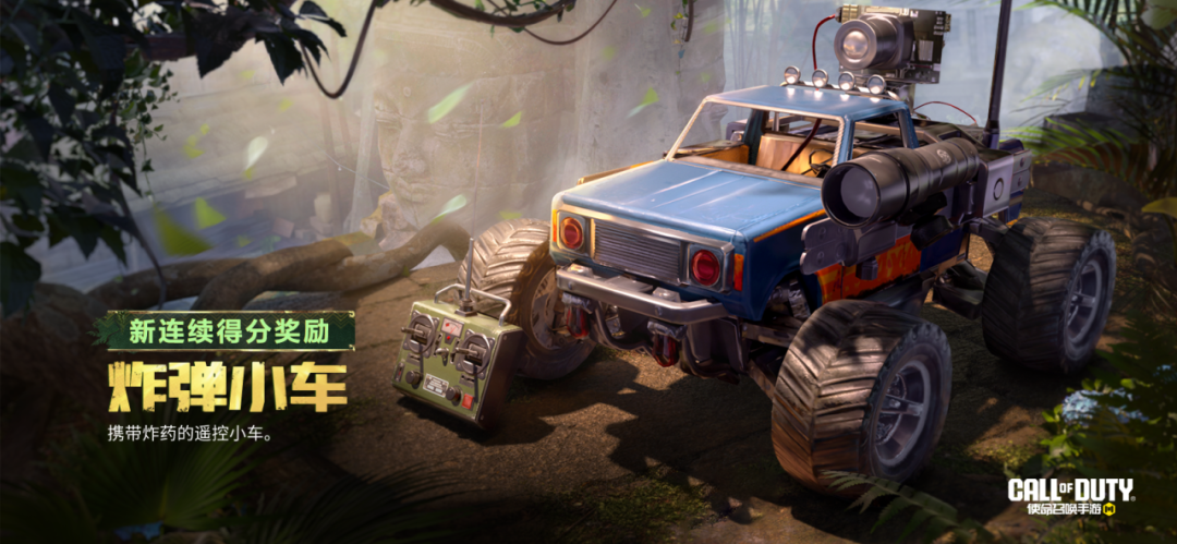 瘦普在使用炸弹小飞机的时候,经常发现它有找不到人或者被防爆装置挡住的情况。但这次,战士们有了新的选择,它就是即将在战场之上投入使用的新连续得分奖励:炸弹小车!