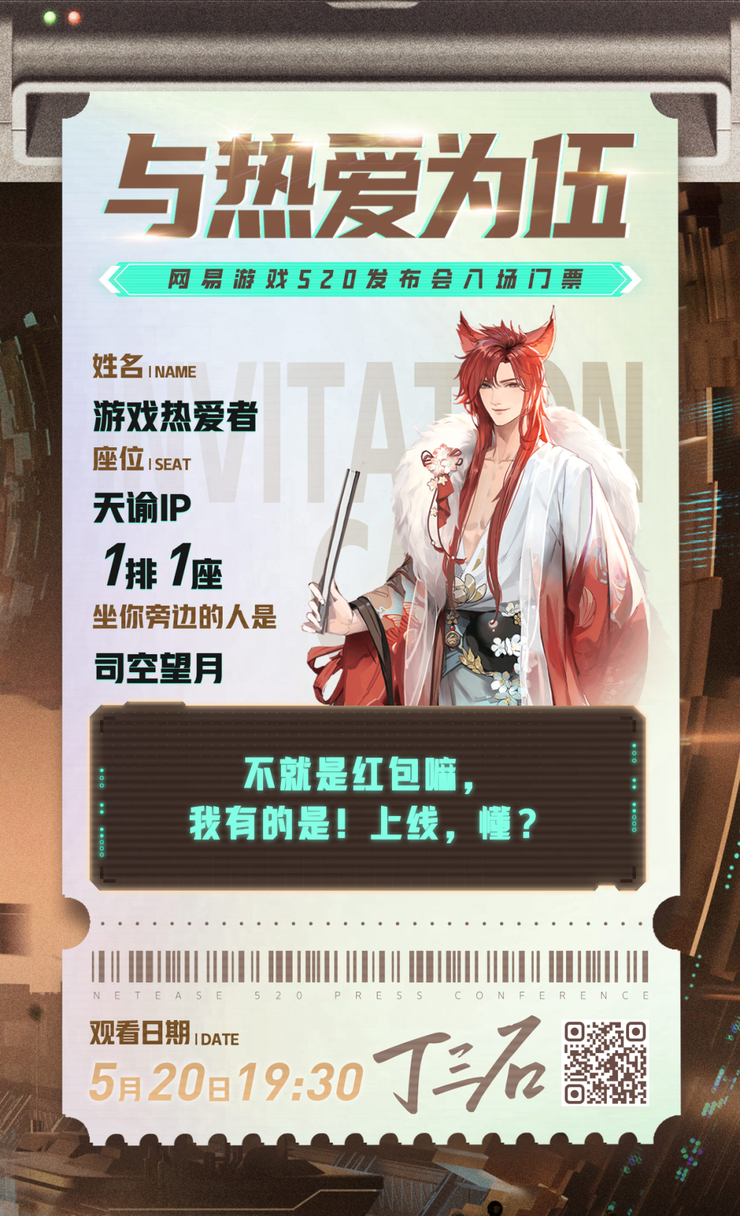 与热爱为伍!预约520网易游戏发布会,奔走吃瓜第一线~今年发布会有哪些精彩内容等着大家,请看VCR👇