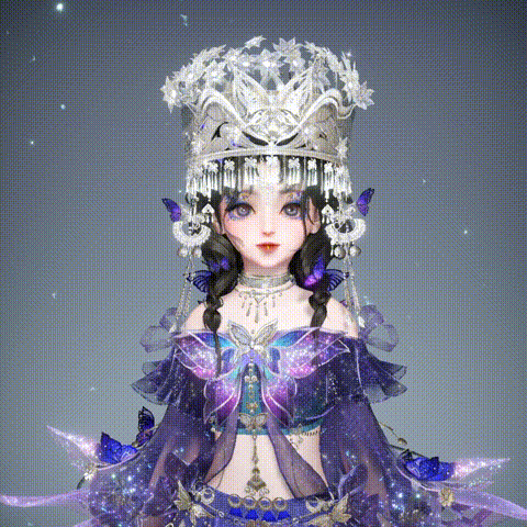 银蝶绕身,银冠大气,美艳高贵。