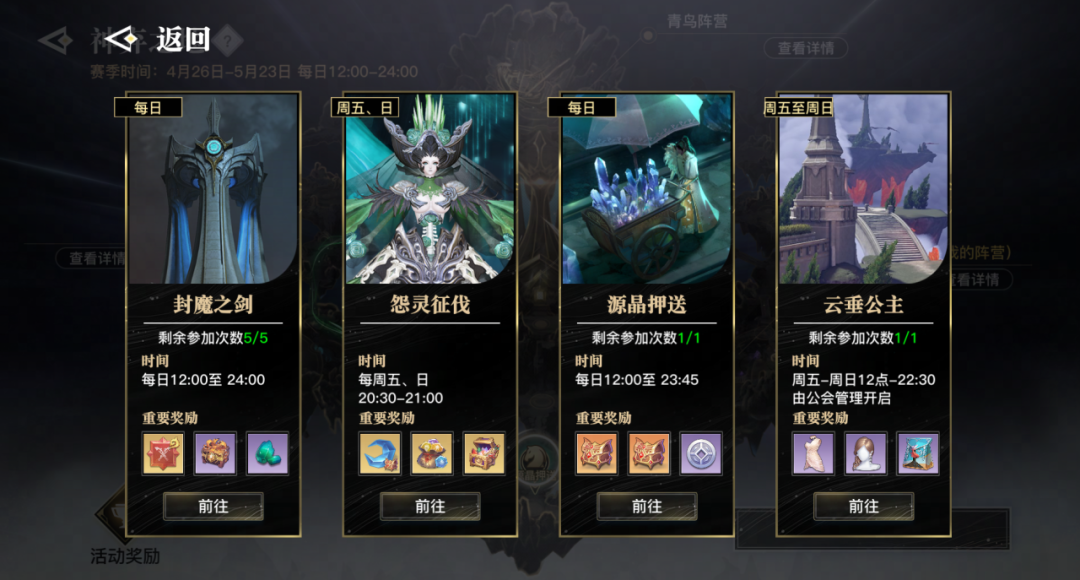 3.雾隐苏澜开启时间从周二调整至周三20:00,服务器等级达到70级后将替换为生死场、青麟劫两个玩法进行轮替。
