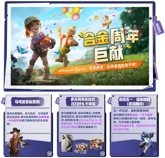此外,只要参与合金一周年庆典专属活动,即能狂扫惊喜好礼不停歇!王者x合金联动新英雄-马可波罗,iPhone 15 Pro、全英雄自选、全皮肤自选(不含龙年限定艾米尔皮肤),等多重好礼等你带回家!