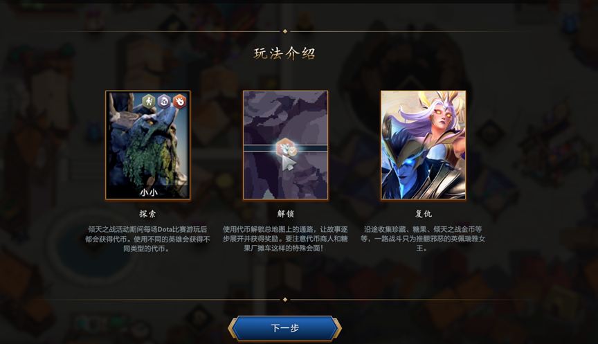 第一次进入活动,你会看到玩法介绍,大概看看就行,然后直接点下一步。