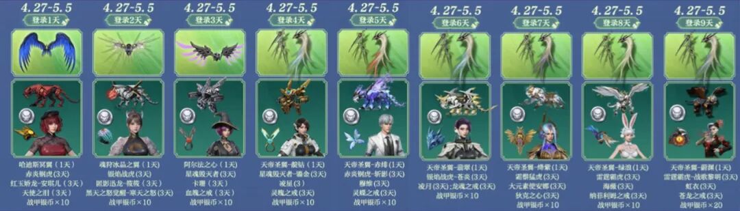5月1日-5月5日,累计游戏天数越多,奖励越丰富,