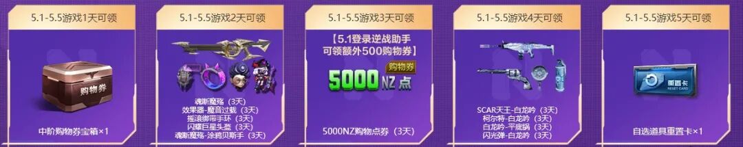悄悄告诉你,5月1日登录逆战助手,还可以额外领取500NZ点购物券呦。